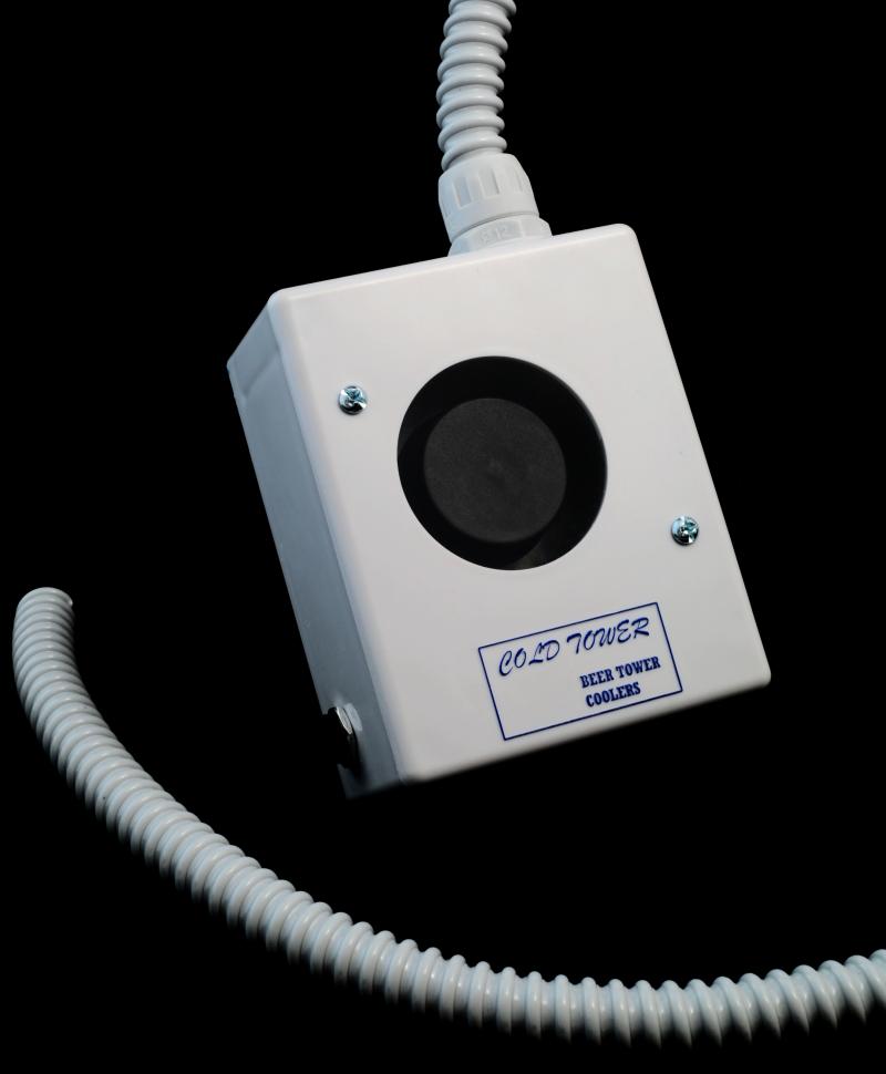 Same as our Super Beer Tower Cooler, but with two switches instead of one. The standard switch on the power cord, for those who don't want to open the kegerator door to turn the tower cooler on and off, and a rocker switch on the unit itself, for those whose outlets are behind their kegerator, making it difficult to turn the tower cooler on and off.